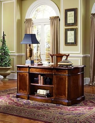 Seven drawers on steel ball bearing slides include two file drawers on full extension slides that accommodate letter and legal files Four utility drawers and center drawer with drop-front for use with a keyboard Bookcase back with one adjustable shelf levelersRich Cherry Finish with Physical Distressing