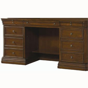 Authorized Hooker Furniture Dealer for 258-10-464 Computer Desks. When purchasing Hooker Furniture products, you can have peace of mind that you're choosing furnishings of enduring quality. Hooker is committed to assuring superior quality through selection of materials and lumber, product design and engineering. Hooker Furniture's mission is to enrich the lives of the people they touch through innovative home furnishings of exceptional value.Features:Center drawer with drop-front for use with keyboardTwo pullout writing slidesLeft side has two utility drawers and one letter/legal file drawerBottom two drawers on left side lockOne center adjustable shelfRight side has one door with pullout printer shelf and one adjustable shelf behindFC-620 power bar with surge protector is accessible from the desk top, center keyboard drawer, and from underneath the unitSpecifications:Dimensions: 66" W x 22" D x 31" HKeyboard drawer: 24" W x 11.13" D x 1.75" HKnee space: 25.83" W x 26.25" HPrinter space: 16" W x 15" D x 20.25" HWeight: 122 lbs..The Design is Credenza.The Material is Wood.The Features is File Drawer.The Features is Locking.The Finish is Cherry.The Assembly is Assembled.