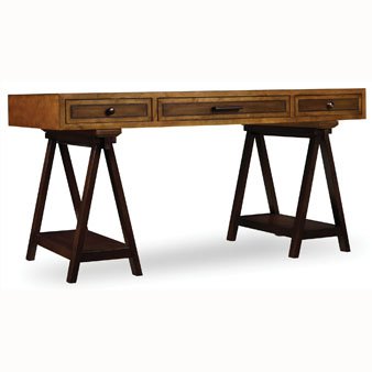 Urban contemporary meets pedigreed traditional.One center drawer with drop-frontTwo drawers with removable dividers and pencil trayTwo shelves on baseCrafted from Hardwood Solids Birch, American Walnut and Chinese Walnut VeneersPart of the Hooker Furniture Trilogy collectionSpecifications:Product Dimensions: 60 W x 30 D x 31 HProduct Weight: 154.00 lbs.