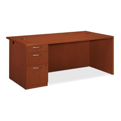 Easy-care laminate is spill-, scratch- and stain-resistant. Drawers operate on steel ball bearing suspensions for smooth, quiet operation. Pencil/media/file drawers; media drawer includes an organizer to hold CDs, tapes, disks and more while file drawer extends fully and includes hangrails for letter or legal size files. Upscale design with clean lines and quality craftsmanship. Easy-care laminate is spill-, scratch- and stain-resistant. Drawers operate on steel ball bearing suspensions for smooth, quiet operation. Pencil/media/file drawers; media drawer includes an organizer to hold CDs, tapes, disks and more. File drawer extends fully and includes hangrails for letter or legal size files. Recessed modesty panel with conference overhang. Wire grommets for convenient cord management. Global Product Type: Desks-Single Pedestal Desk; Top Color/Finish: Henna Cherry; Number of Pedestals: 1; Frame Material: Thermally Fused Laminate.