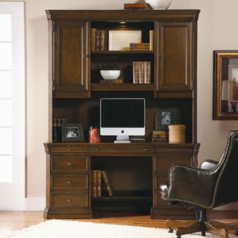 Authorized Hooker Furniture Dealer for 258-10-467 Computer Desks. When purchasing Hooker Furniture products, you can have peace of mind that you're choosing furnishings of enduring quality. Hooker is committed to assuring superior quality through selection of materials and lumber, product design and engineering. Hooker Furniture's mission is to enrich the lives of the people they touch through innovative home furnishings of exceptional value.Features:Removable charging station with FC-707 power bar with powered USB port and three electrical outletsOne adjustable wood-framed glass shelf in center sectionOne can light controlled by three-intensity touch switchOne task lightTwo doors with one adjustable shelf behind eachPlease note that due to canted corners this does not bunch with the 258-70 wall itemsSpecifications:Dimensions: 66" W x 16.5" D x 56" HWeight: 98 lbs..The Design is Credenza.The Material is Wood.The Finish is Cherry.The Assembly is Assembled.